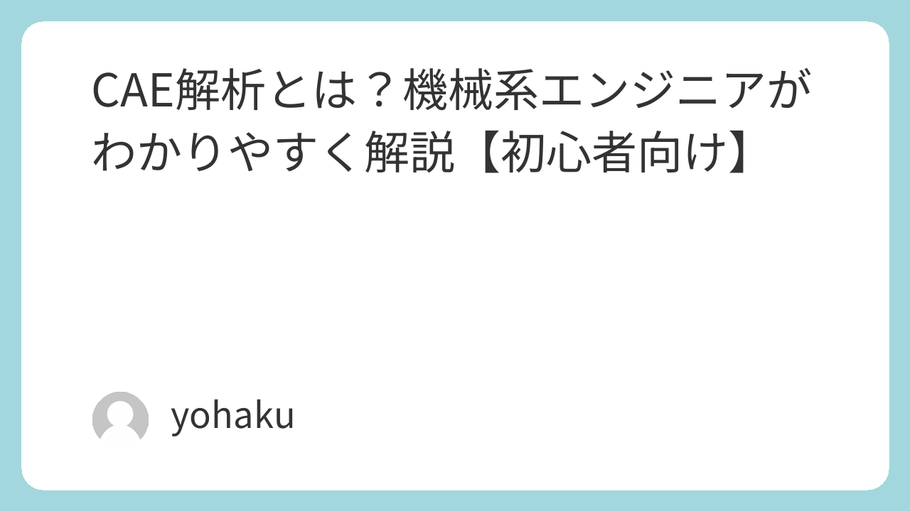 こんにちは。機械メーカーでCAE解析業務に携わっている機械系エンジニアです。